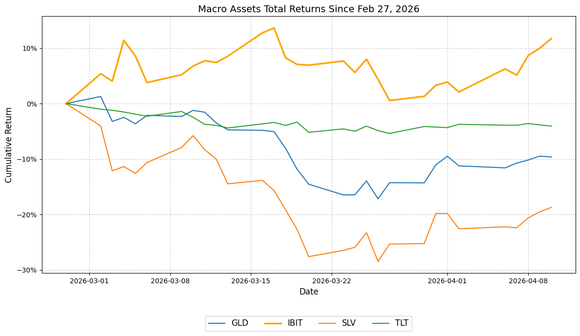 This was an environment where long-duration bonds fell, gold fell, silver fell, international equities lagged, and Bitcoin exposure outperformed all of them.