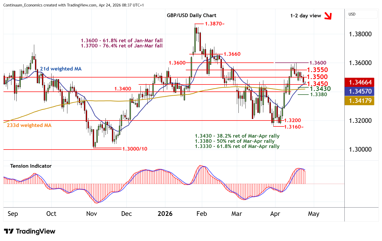 | R1 | 1.3500 | ** | congestion | S4 | 1.3380 | ** | 50% ret of Mar-Apr rally |