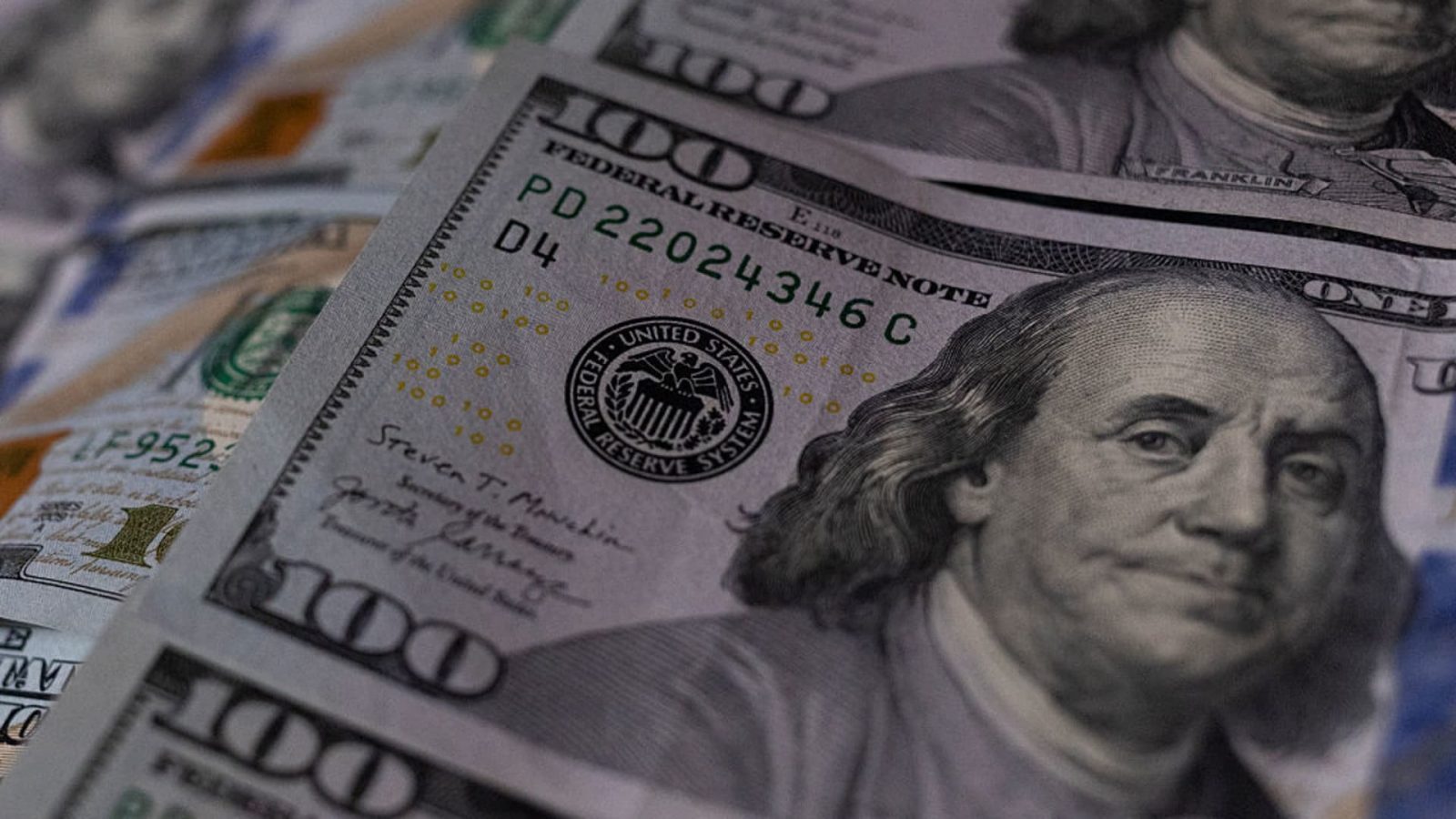 U.S. one hundred dollar bills are shown in Buenos Aires, Argentina, on April 15, 2026.